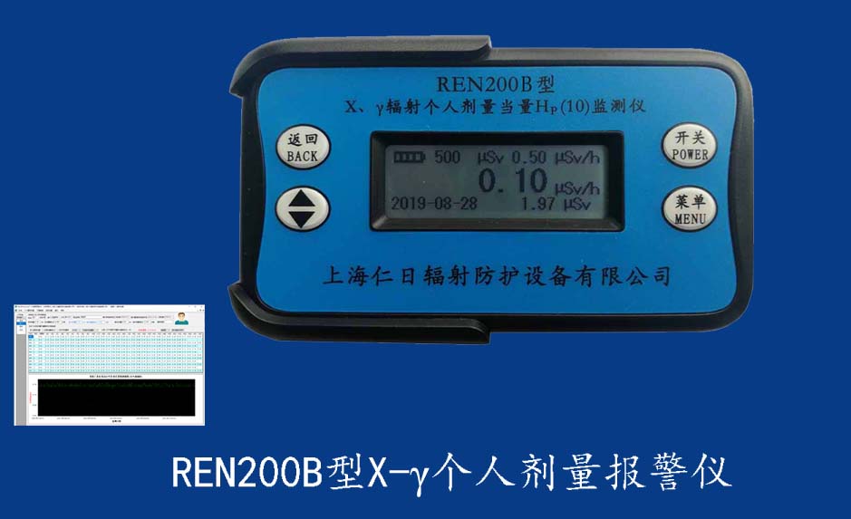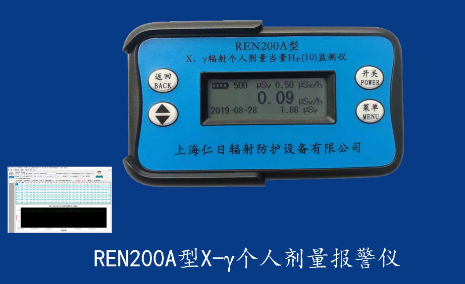 REN200型X、γ個(gè)人劑量報(bào)警儀(又叫X、γ輻射個(gè)人劑量當(dāng)量HP(10)監(jiān)測(cè)儀)內(nèi)置高靈敏度蓋格計(jì)數(shù)管為探測(cè)器,主要用來(lái)監(jiān)測(cè)各種放射性工作場(chǎng)所的X、γ以及硬β射線的輻射,具有響應(yīng)快,測(cè)量范圍寬的特點(diǎn)。能顯示工作場(chǎng)所的劑量當(dāng)量率和累積劑量,更換電池時(shí),日期及累積數(shù)據(jù)能永久保存。可選配RenRiPersonal個(gè)人劑量管理軟件,該軟件可存儲(chǔ)多個(gè)人的歷史數(shù)據(jù),能記錄日累積、月累積、年累積、輻照時(shí)長(zhǎng)、計(jì)算平均劑量率、扣除或不扣除本底輻射,且以文字和圖譜的方式展現(xiàn)數(shù)據(jù)。廣泛應(yīng)用于核電站、加速器、鋼鐵、化工、同位素應(yīng)用、醫(yī)院、工業(yè)X、γ無(wú)損探傷、放射醫(yī)療、鈷源治療、γ輻照、放射性實(shí)驗(yàn)室、核設(shè)施周圍環(huán)境監(jiān)測(cè)